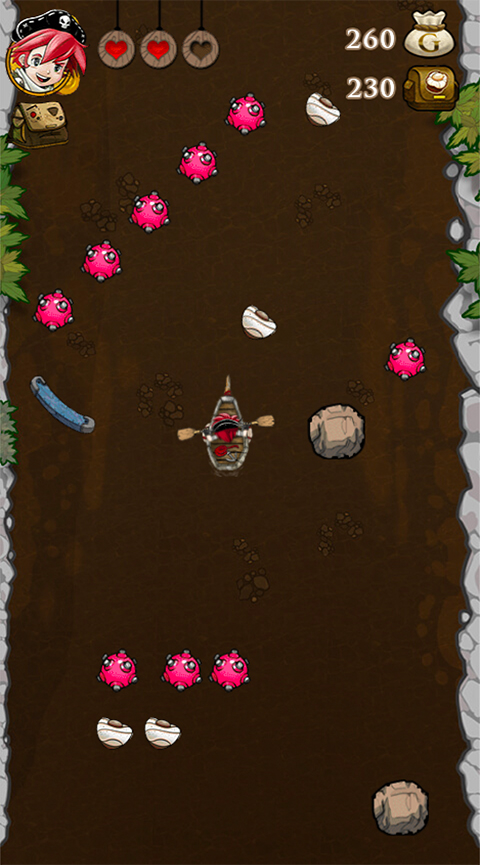 In ChocoHunters you are in control of a Hero. You maneuver on a chocolate river and try to collect chocolate and gold.